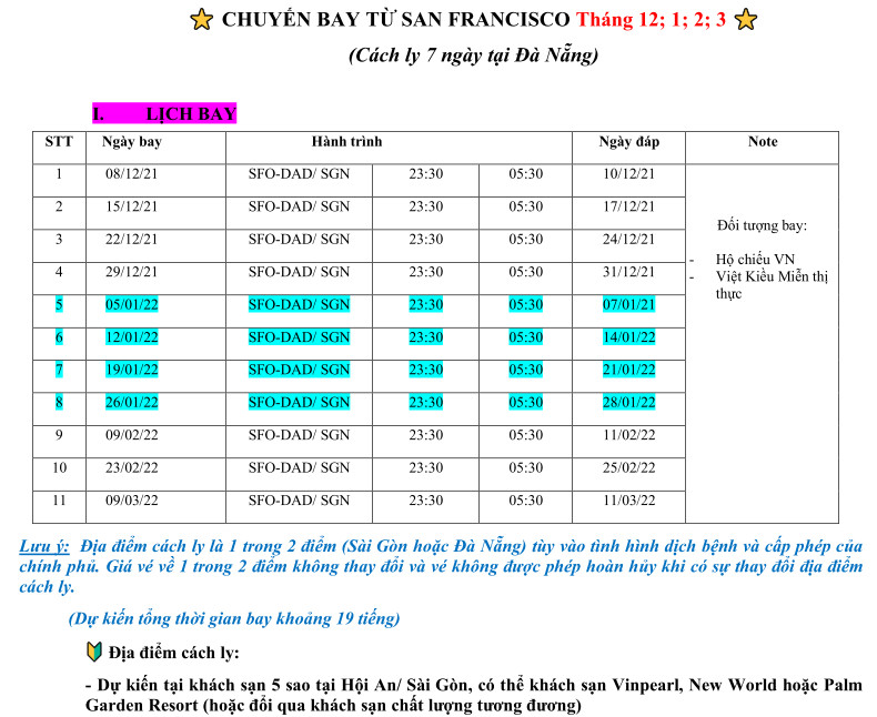 CÁC CHUYẾN BAY HỒI HƯƠNG T1,2,3/22